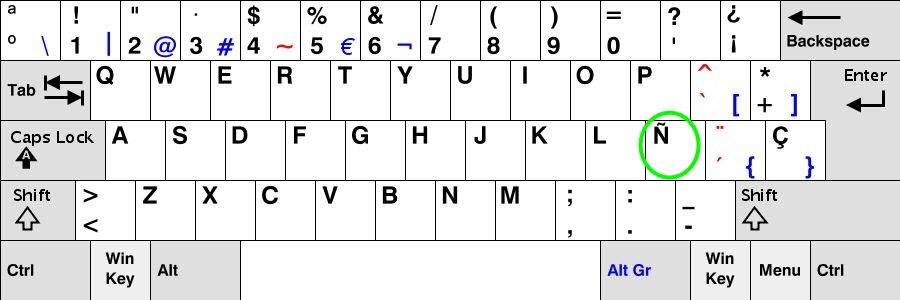 Obs: otros teclados Latinos tienen su acento agudo en otra ubicación.
