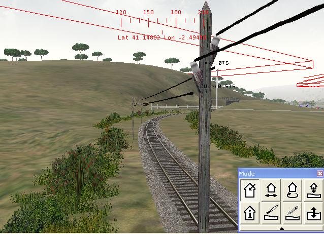 - Para la vía doble, o cuando las vías van en doble (andenes de estaciones), en el mejor de los casos, al considerarlo un sólo objeto pone una hilera de postes. Pero como vereis en esa secuencia que pongo. Sólo pone un poste.