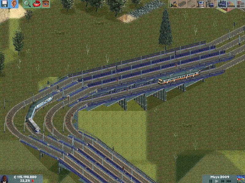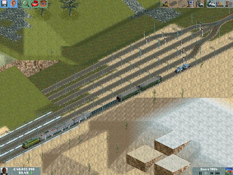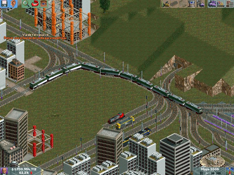 Os explico, me he creado un mapa totalmente llano, con muchas industrias. Para ver hasta donde podría llegar y a cuantos trenes podría hacer jaja. Lo empece en el año 1995 justo, con ciudades pequeñas apenas de 500 habitantes. Ahorra llevan algunas mas de 60.000 habitantes, y lógicamente las estoy encerrando para que no crezcan porque madre mía. Llevo unos 130 trenes, 14 aviones y unos 20 tranvías.
