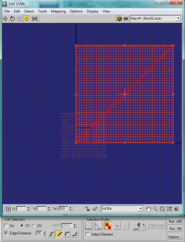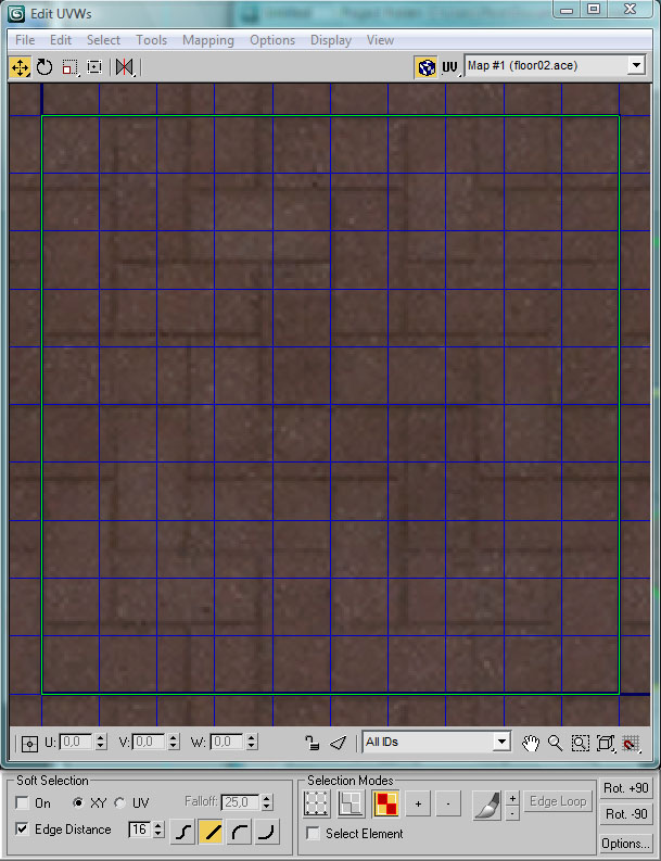 Añadiremos al polígono del suelo un modificador Unwrap UVW y en modo Face abriremos el editor UVW: