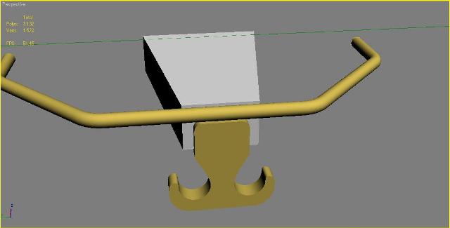 Probé a crear el gancho en AutoCAD, la verdad tardé muchisimo menos porque ofrece muchas facilidades para el 2D, y a continuación lo importé con Max. El resultado: