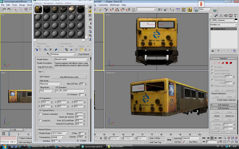 El objeto que hará de cristal lo tengo hecho, pero ahora me queda averiguar que shader usar, o si hay que hacer un canal alfa como en msts.