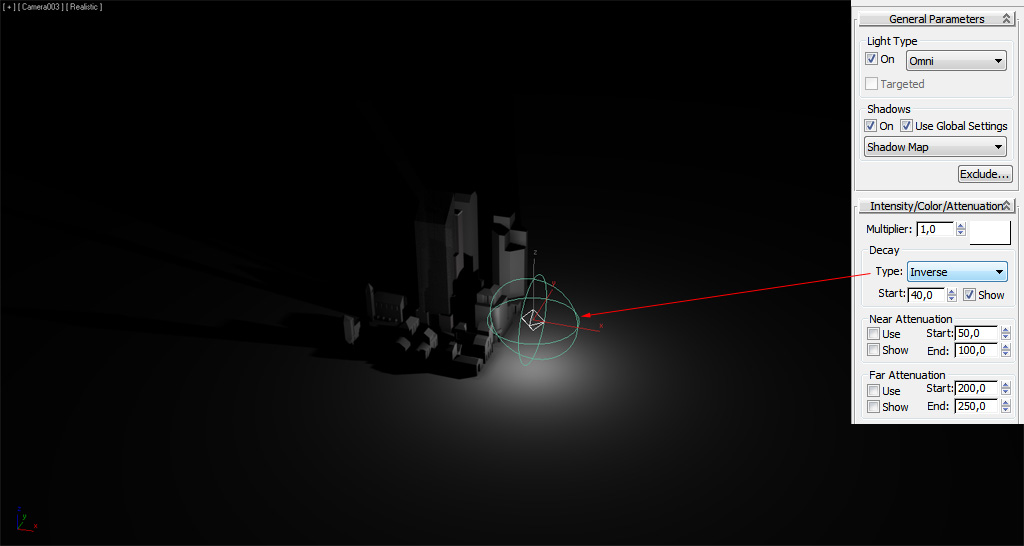 Como las luces "Point" u "Omni", podemos ajustar el multiplicador/intensidad: