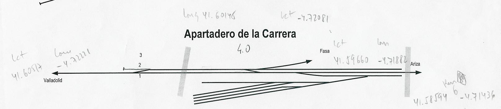 He hecho una de mis chapuzas. Resulta que en la ruta Valladolid-Aranda de Duero-Chelva el Cargadero de La Carrera tiene dos agujas que tienen el vértice en Valladolid, con lo que no sirve para cruces y, sin embargo, en los esquemas de estaciones que también nos proporciono Orobón viene uno de vértice para Valladolid y otro para Aranda. Bueno, pues he intentado rehacerlo de esta forma y después de decirme que tenía todas las actividades que pasan por allí fuera de ruta y volverlas a poner, me dice este mensaje del asunto y no me deja jugar.