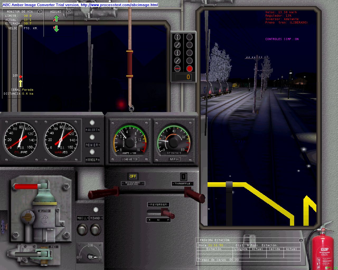 Hola amigos, cumpli con esta segunda parte, luego de haber hecho el Siderurgico hice el Chatarrero, terminada en 02:40:57, bastantito mas de lo previsto, y como me fui demorando cuando llegue a Soria-Cañuelo tuve que hacer algunas maniobras para dejar el paso libre a mi formacion, muy entretenida al igual que la anterior, muy precisos los mensajes y el paisaje que va cambiando de atardecer a la noche oscura. Tambien aproveche la oportunidad para ponerle esta cabina nueva de Alco a la loco de mi tren, asi que todo MUY BUENO. De recuerdo les dejo algunas imagenes que pude tomar en el recorrido.
