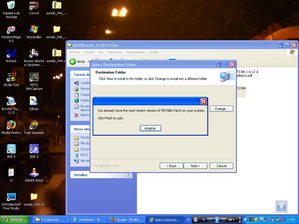 2.foto:error al instalar el parche, pone que ya esta instalado