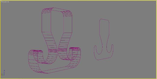 Probé a crear el gancho en AutoCAD, la verdad tardé muchisimo menos porque ofrece muchas facilidades para el 2D, y a continuación lo importé con Max. El resultado: