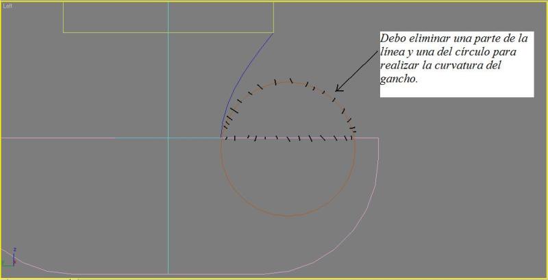 Probé a crear el gancho en AutoCAD, la verdad tardé muchisimo menos porque ofrece muchas facilidades para el 2D, y a continuación lo importé con Max. El resultado: