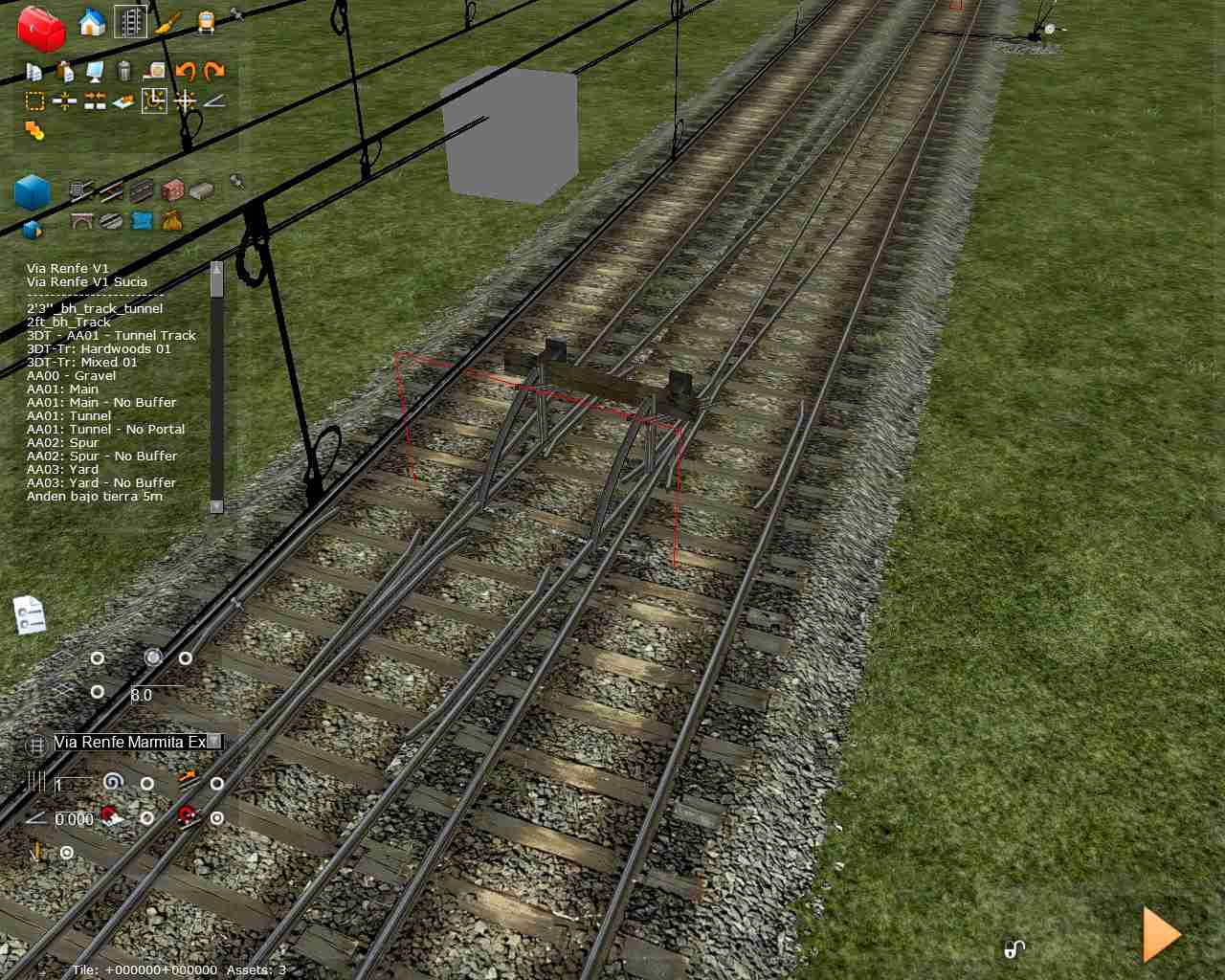 Abro este hilo para comentaros un pequeño descubrimiento con el que me topé por casualidad. Como ya hemos hablado anteriormente sobre las vías la entrevía 'normal' de Adif es de 4 metros, siempre que sea en líneas para velocidades <=160, pero el RW digamos que es un poco caprichoso con entrevías estrechas, produciendo errores en los corazones y al realizar desvíos dobles. Pues bien, trasteando con una ruta de pruebas donde hago todo tipo de combinaciones de vías descubrí por casualidad que usando la herramienta de pegar la vía al terreno no sólo no aparece el error en los corazones, sino que no pone ninguna pega al crear aparatos de vía unos detrás de otros, cosa que sin usar esta herramienta no se puede conseguir si no es con entrevías superiores. No le encuentro la lógica a esto pero funciona, que es lo importante. En las vías de Camber con la entrevía normalizada a 4 metros se puede hacer de todo y sin problema alguno usando esta herramienta, sin embargo las de Pere sí que dan algún problema en desvíos dobles (será cuestión de modificar algún valor). La forma de proceder sería plantar la vía general, pegar el terreno a la vía y para terminar plantar el desvío con la herramienta pegar al terreno (al estar ya pegado a la vía la que pongamos seguirá el mismo patrón que las generales) y listo.