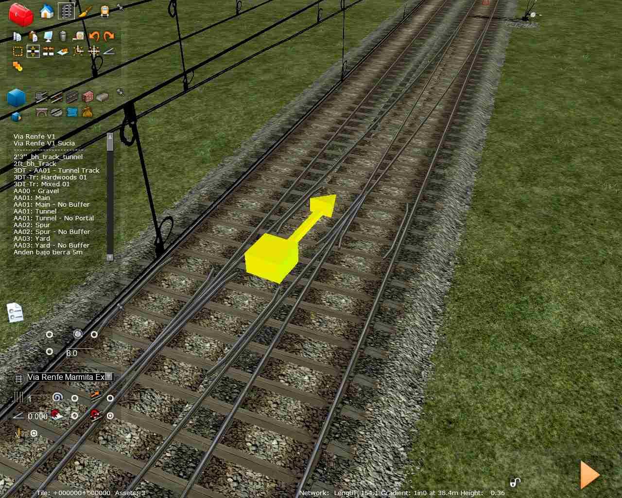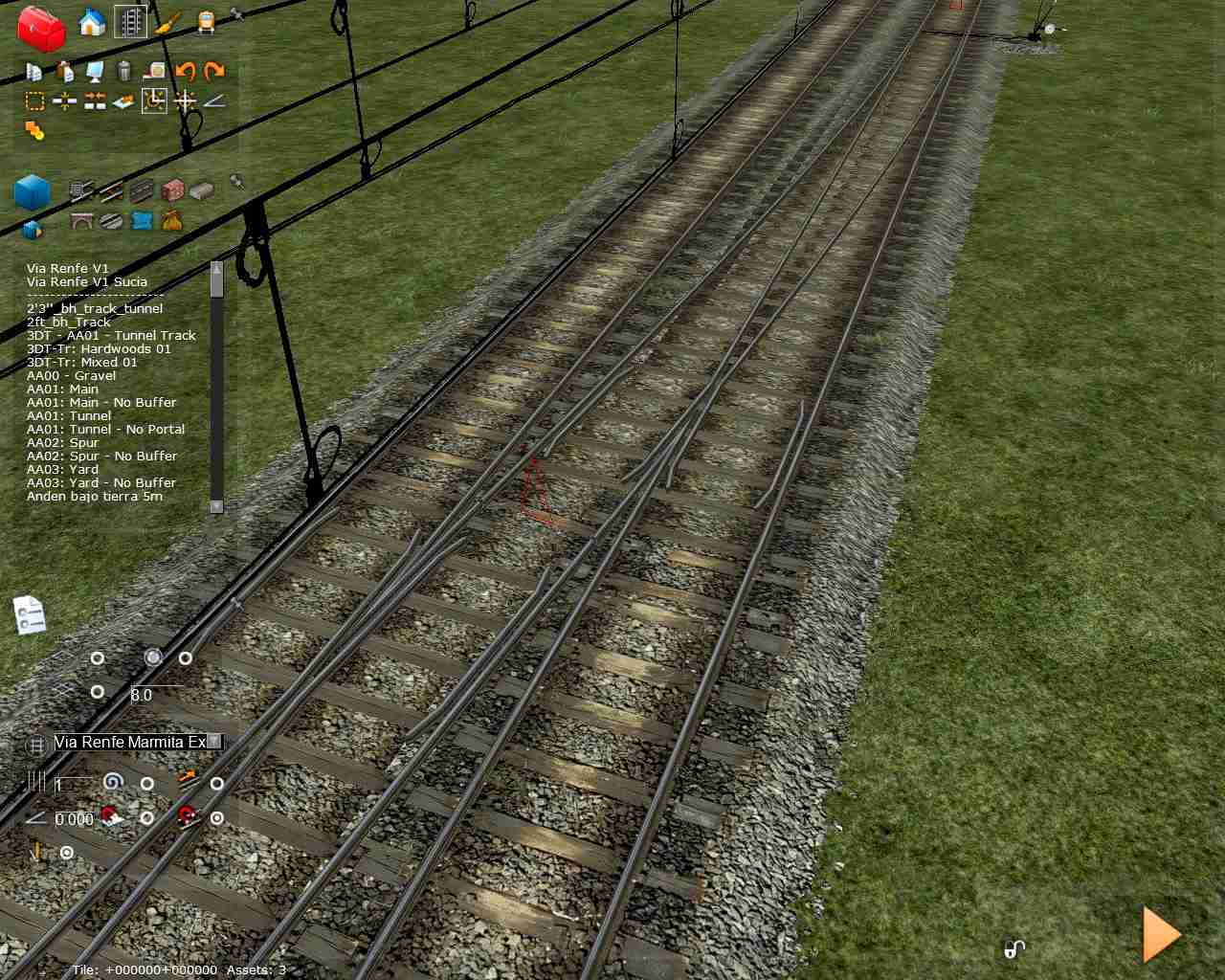 Abro este hilo para comentaros un pequeño descubrimiento con el que me topé por casualidad. Como ya hemos hablado anteriormente sobre las vías la entrevía 'normal' de Adif es de 4 metros, siempre que sea en líneas para velocidades <=160, pero el RW digamos que es un poco caprichoso con entrevías estrechas, produciendo errores en los corazones y al realizar desvíos dobles. Pues bien, trasteando con una ruta de pruebas donde hago todo tipo de combinaciones de vías descubrí por casualidad que usando la herramienta de pegar la vía al terreno no sólo no aparece el error en los corazones, sino que no pone ninguna pega al crear aparatos de vía unos detrás de otros, cosa que sin usar esta herramienta no se puede conseguir si no es con entrevías superiores. No le encuentro la lógica a esto pero funciona, que es lo importante. En las vías de Camber con la entrevía normalizada a 4 metros se puede hacer de todo y sin problema alguno usando esta herramienta, sin embargo las de Pere sí que dan algún problema en desvíos dobles (será cuestión de modificar algún valor). La forma de proceder sería plantar la vía general, pegar el terreno a la vía y para terminar plantar el desvío con la herramienta pegar al terreno (al estar ya pegado a la vía la que pongamos seguirá el mismo patrón que las generales) y listo.