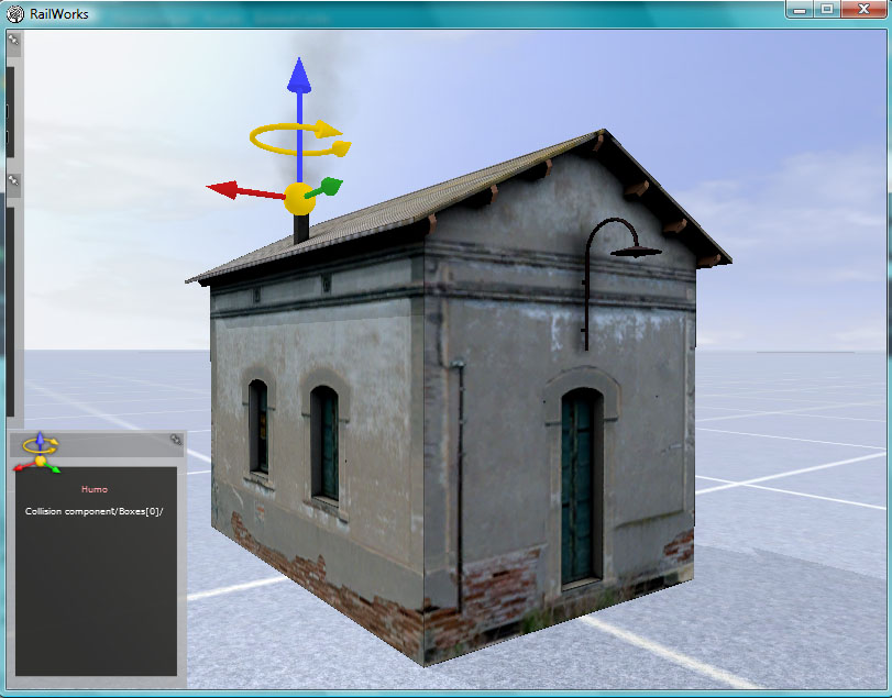 El humo es un componente de RailWorks independiente de la casilla o de cualquier otro objeto, que se define con su propio blueprint, para luego añadirlo al objeto deseado. Adjunto un archivo .zip con algunos elementos que nos facilitarán la creación de un efecto de humo.