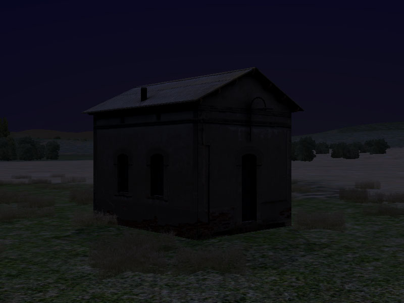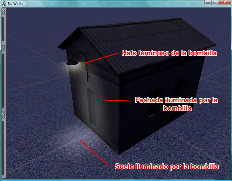 Hay que señalar que, al igual que podemos usar el nombre de nodo "fx_night" para objetos que tan sólo se visualizan por la noche, también disponemos del nombre de nodo "fx_day" que realiza la acción contraria, es decir, se visualiza únicamente durante el día. Ambos nodos son alternativos y en el preciso momento que uno se desactiva el otro se activa, por lo que combinados podemos representar con ellos elementos que tienen diferente aspecto de día o de noche.