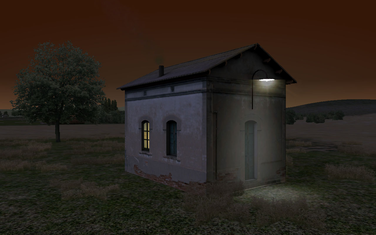 Le he llamado "Casilla_Noche", y he asignado el shader "Tex", al cual le he cargado en el Slot 1 (el único de este shader) la textura "ES_Casilla_Noche.ace". Este shader no necesita que ajustemos ningún parámetro, y es prácticamente idéntico al estándar "TexDiff", con la salvedad de que no está afectado por la luz "difusa", es decir, por la luz ambiente. Dicho en otras palabras, la luminosidad de la textura se preservará con independencia de si es de día o de noche, de si está en la fachada iluminada de la casa o en la fachada en sombra, etc. Por tanto, este shader es ideal para representar por la noche objetos iluminados, interiores de coches de pasajeros, de cabinas de locomotoras, y todo lo que se nos ocurra que deba mantener una cierta "luz propia".