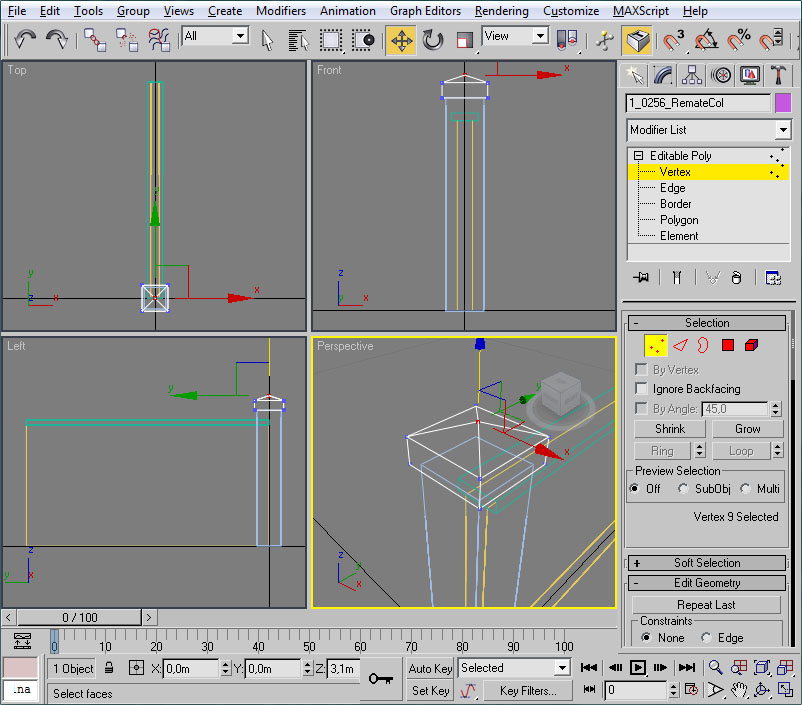 Repetiremos esta acción para el otro lado del muro. Una vez ambos lados tengan el mapeo correcto, nuevamente entraremos en el editor UVW para ajustar el mapeo a la zona de ladrillos exclusivamente: