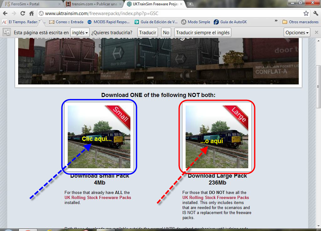 El paquete pequeño con los escenarios sólo (4 MB), o el paquete grande, que también incluye material rodante (236 MB):