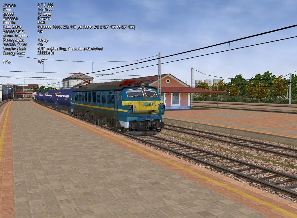 Visualmente ORTS cuida mejor los modelos que MSTS, aunque consume recursos a discreción. Ya digo, a mí me trabaja la CPU con dos nucleos a tope y otros dos al 75%. No penseis que si el MSTS os funciona bien el ORTS va ha comportarse igual, ni mucho menos. Necesita una buena máquina para funcionar a pleno rendimiento... Pero fijaros bien en que las catenarias de la ruta no me van, aunque las tengo seleccionadas en el menú de inicio. ORTS necesita aun mucho trabajo...