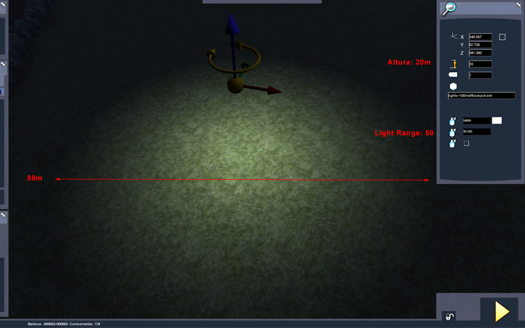 Vamos a conocer mejor los parámetros de ajuste de Altura (terreno) y Light range (intensidad) de las luces Spot: