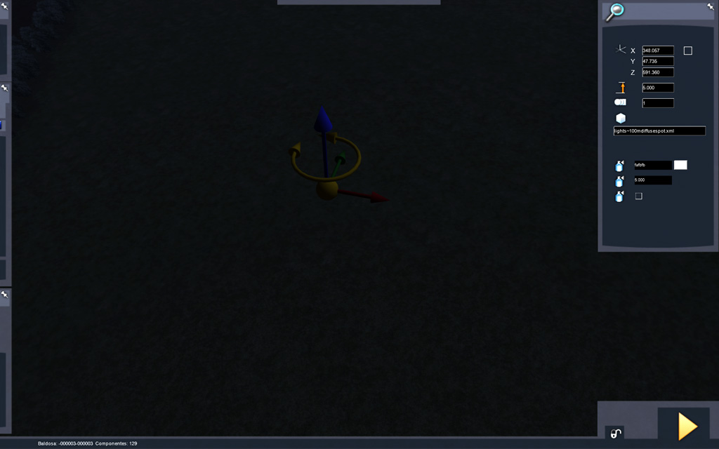 Por otra parte, señalar que el uso de los componentes 'spotlight' y 'pointlight' no reconocen el parámetro 'DayNightCycle' que le indica al componente de alumbrado si se activan siempre o solo de noche, ya que carecen de él. Usar estos dos componentes para cualquier tipo de alumbrado ofrece resultados dispares.
