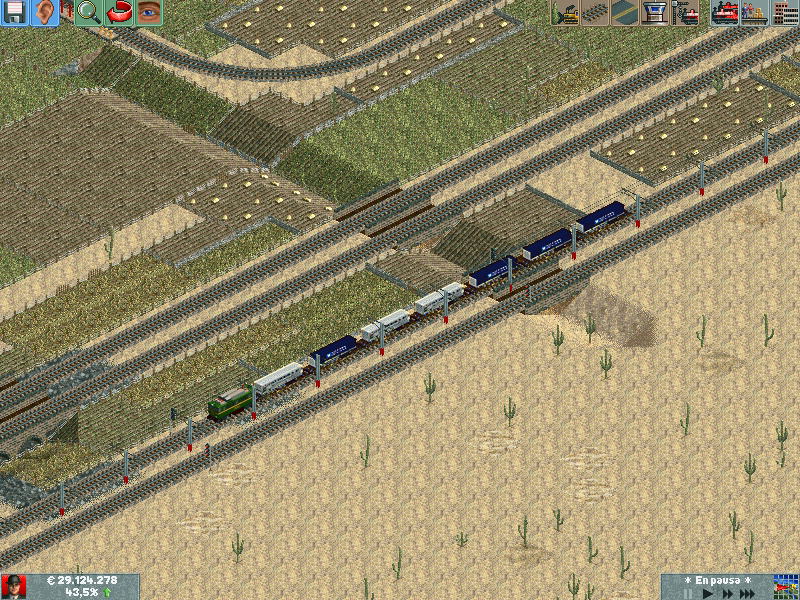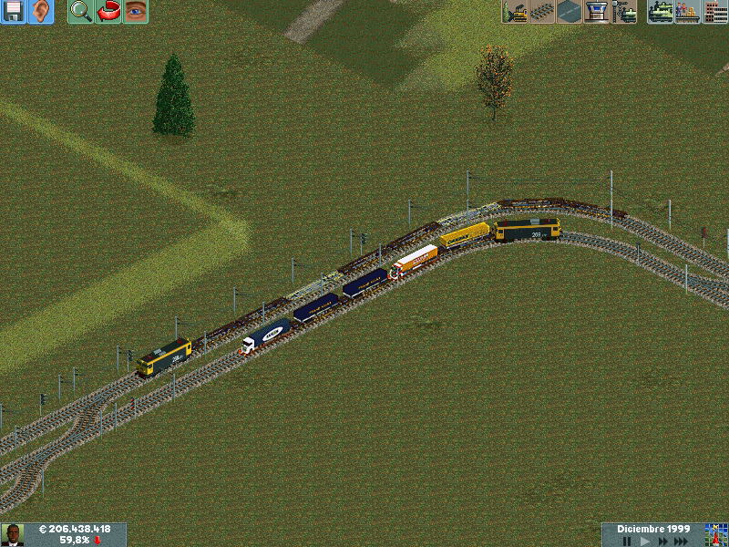 Un par de capturas, en la primera una estación compartida con la AI, donde hay todo tipo de servicios, incluso uno de trenes turísticos con locomotora de vapor, otro es de mercancías, donde se llevan plásticos a la fábrica desde una lejana refinería.