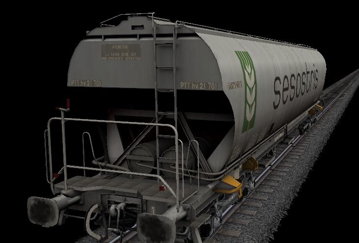 Os adjunto unas fotos de una primera exportación prueba y agradecerles desde aquí a Adrián (R_E_N_F_E), a LBA, a Blas_Dani y a Javierfl, la posibilidad de que nosotros también podamos disfrutar de las tolvas como ya lo hacen en Trainz. A petición de los autores, las tolvas serán publicadas aquí en trensim.