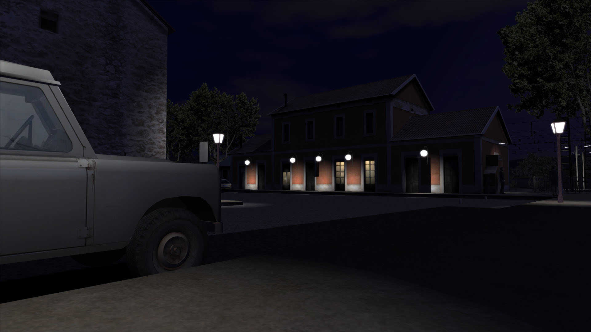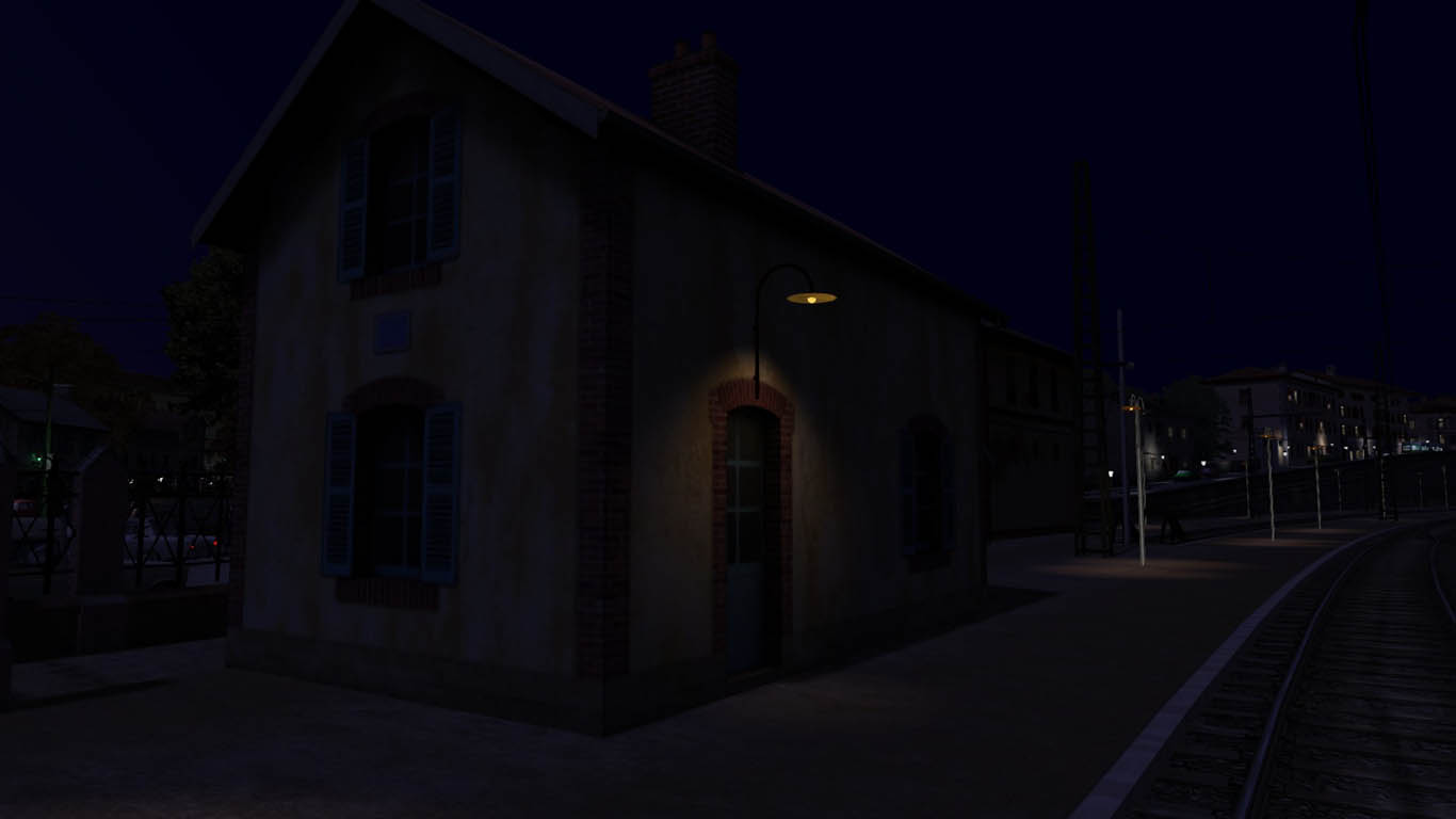 Agregados los últimos efectos de luces interiores (a través de los cristales de puertas) en la sala de espera y el despacho del jefe de estación, para las tomas nocturnas: