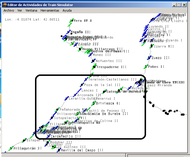 Como sabréis, incluye todo Asturias de vía ancha tanto de RENFE como de ENSIDESA (La Barca y El Valle) y el puerto de Pancorbo, de Burgos a Miranda. Las vías de FEVE de Asturias son sólo decoración, aunque sí puede tener tráficos que ambienten.