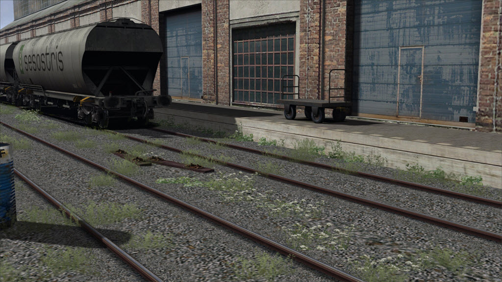 Hola, siempre vemos en las rutas "reales" modernizadas una zona o vías abandonadas es decir: para albergar material rodante en desuso, vías muertas a ninguna parte o tramos que han quedado de viejas líneas o ramales clausurados hace tiempo, vemos esas vías tapadas de tierra, enterradas, tramos sin durmientes (de madera obvio) o con restos de ellos, rieles más oxidado que el Titanic, etc...