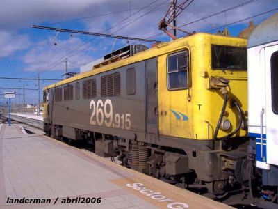 La locomotora 269-915 se dispone a salir de Bobadilla con destino a Málaga tirando de el Picasso compuesto en esta ocasión de diez coches nada menos.