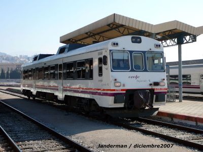 La Unidad 596-006 espera en la estación de Granada para salir con destino a Linares.