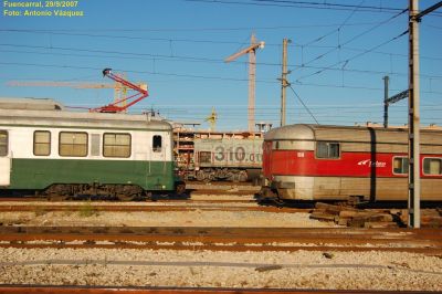 Al fondo, cruza una 310 a toda marcha, a la izquierda la 435 arrancada y a la derecha un TALGO III