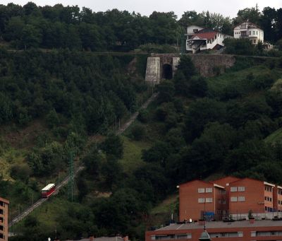 Funicular de Artxanda, en Bilbao, fotografiado desde el puente del Arenal.
